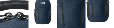 Embark on your next adventure with this ultraversatile pack. 600D 50% recycled polyester with non-PFC durable water-repellent (non-PFC DWR) finish (Solids) 300D heathered polyester with non-PFC durable water-repellent (non-PFC DWR) finish (Heathers) 100% recycled trim FlexVent suspension system Two webbing top handles Padded, protective 15' laptop sleeve Front compartment has secure-zip pockets, tablet sleeve and key fob 360-degree reflectivity Two exterior water bottle pockets Exterior stash pocket Sternum strap with whistle buckle Contrast embroidered The North Face logo on front Average weight: 1 lb. 12 oz. (795 g) Volume: 1,770 in³ (29 liters) Laptop sleeve: 11.5'h x 11'd Dimensions: 18'h x 11'w x 8.5'd