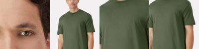 4.3-ounce, 60/40 combed ring spun cotton/poly, 32 singles CVC blend 1x1 rib knit neck Shoulder to shoulder taping Tear-away label Side seamed Relaxed fit