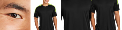 Put yourself at the top of the game with this Competitor United crew that features moisture wicking and sun protection. 3.8-ounce, 100% poly interlock with PosiCharge ® technology UPF rating of 30+ Tear-away label Contrast colorblocking on shoulders