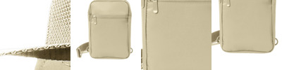 Smooth matte polyester with knitted cloth Zippered main compartment Dyed-to-match metal zipper pulls Front zippered pocket Dyed-to-match molded zippers Adjustable ambidextrous webbing shoulder strap Web carry handle Dimensions: 11'h x 7'w x 2.25'd Capacity: 244 cu. in./4 L Weight: 0.4 lbs./0.2 kg Note: Bags not intended for use by children 12 and under.