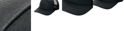- 100% cotton twill front panels and bill (Solids), 65/35 polyester/cotton twill (Heather Grey), 100% polyester mesh back panels