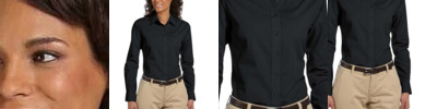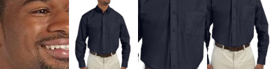 • Signature horn-style buttons with Harriton logo and contrast thread
