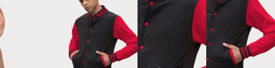 9.8 oz./yd², 70/30 ringspun cotton/polyester Knitted collar, cuffs and waistband with stripe detail Press-stud front closure Welt contrast pockets Tear away label
