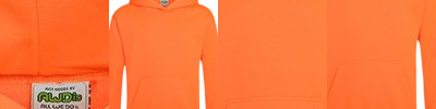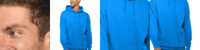 8.3 oz./yd², 80/20 ringspun cotton/polyester, 30 singles Cuff and waistband: 95/5 cotton/spandex Premium three-end fleece Double-needle top stitch on all seams Three-panel hood with fleece lining Dyed to match round drawcord with tipped ends and metal eyelets Twill neck tape 1x1 ribbing at sleeve cuff and waistband Tear away label