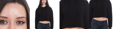 9.8 oz., 70/30 ringspun cotton/polyester 100% cotton face Cross over neck detail Pouch pocket Rib cuffs and hem Tear away label