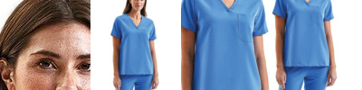 - V-neck style with left chest pocket with combined mobile and pen pocket