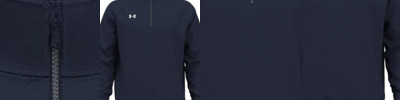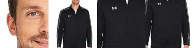 - UA woven label centered on left sleeve hem and UA heat seal center back neck