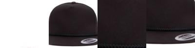 60% cotton / 40% polyester; 5-Panel, Structured, High-Profile, Flat visor; 4" Crown height; 1/4" thick braid on visor ; Matching plastic snap; Medium buckram ; Matching undervisor ;